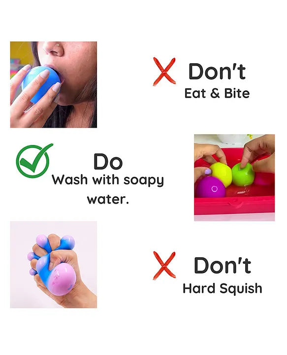 - After frequent use, we recommend washing these mini stress balls with dish soap and warm water, then let it air dry.