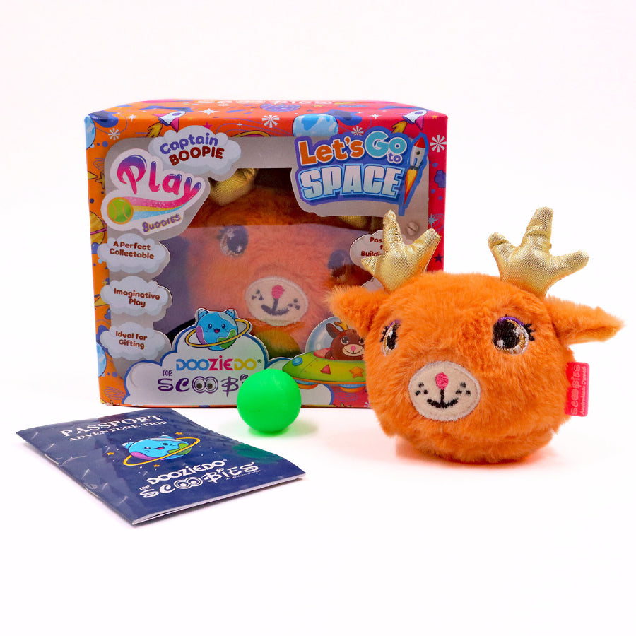 Let kids embark on an out-of-this-world adventure with Scoobies "Furry Tales Let's Go to Space Study Buddies" set! This engaging pack includes an adorable animal character plush toy, a fascinating 3D planet model, and a playful passport for intergalactic exploration.