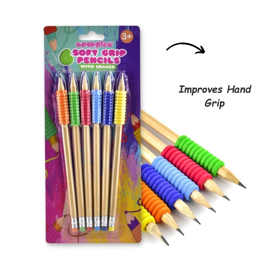 - Soft Grip Pencils - Draw, write or sketch using these pencils with multicolor, EVA foam removable grippers. Helps in improving hand grip. Pack of 6, worth Rs 199/