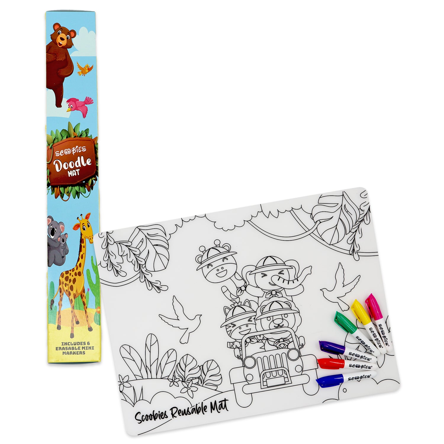 With an utmost focus on value-driven kids' activities & toys, Scoobies takes pride in its concept of ed-tainment, i.e - a fusion of education & entertainment. Our Silicone Doodle Mats are an effort towards bringing eco-conscious reusable kids products. Wondering what's so intriguing about these mats? The beauty of these placemats lies in the material it is made of - Silicone. These Doodle Mats can be cleaned using a wipe, damp cloth, or by simply using soap & water. The use of silicone also implies that these mats are free from harmful substances and it is BPA-free, non-toxic, and of food-grade quality. This non-porous, non-slippery, & wrinkle-free mat does not curl from the edge/s while coloring and places itself easily on a table or any flat surface/s. Use it as a coloring mat, table, or dining placemat. Let kids enjoy their favorite meal while coloring at home or outside. A perfect addition for kids & mums on the go! This is a perfect activity for kids 3 years & above as kids in this phase are learning to write, color & make a hand grip and they're over their mouthing & teething phase. This Animal drive features a bear, lion, elephant, and giraffe along with a bird flying in the backdrop. With kids, talk about these animals, their traits, and habitats, make your own imaginative & compelling stories around these animals, and color these animals & overall placemat. Then clean it and color it all over again, there is no end to engaging screen-free play.