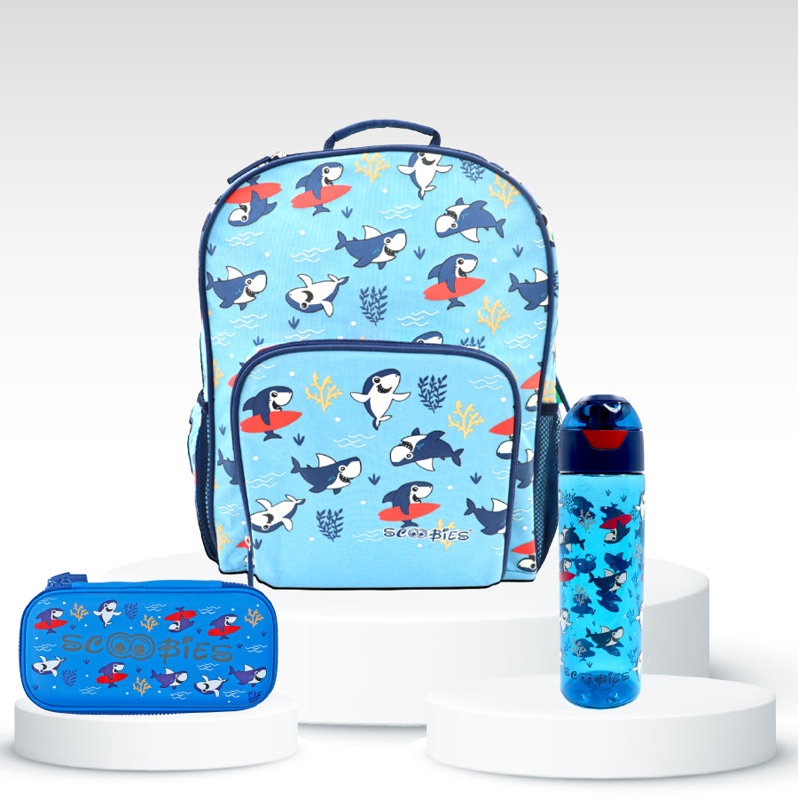 Shark Club has everything your little one need for school - a bag, pencil case & bottle. These sharky buddies have especially landed on earth from blue sea planet to be your little munchkin's schooling & learning partner. In a school bus, classrooms, playgrounds, scoo-sharky buddies are not gonna leave your kid's side.