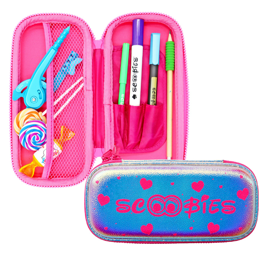 No more excuses for going to school with Scoobies Heart Is Pink Holographic Pencil Case. The holographic print produces a 3D effect in different lights & colors. t.