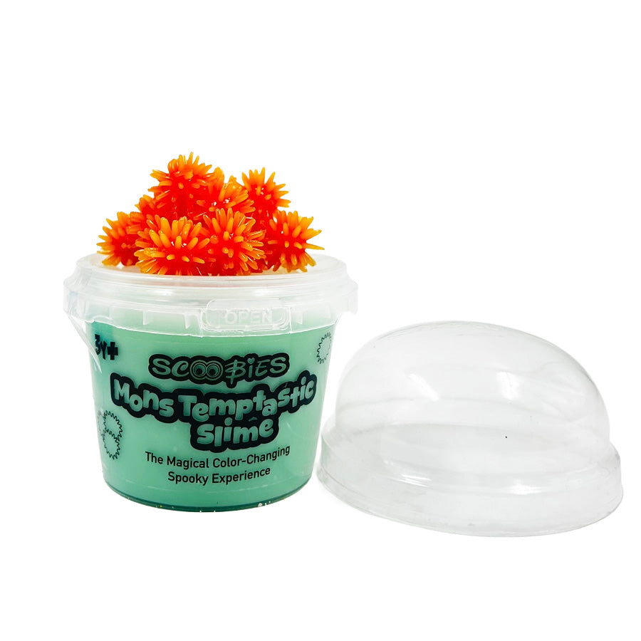 Scoobies Mons Temptastic Slime is a heat-reactive, color-changing slime that responds to the warmth of little hands. It comes with free color-changing crawlers inside, making playtime more engaging, sensory-rich, and full of delightful surprises for kids.