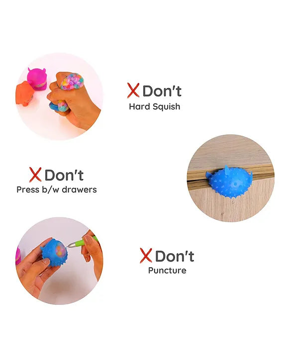 Pack Includes - Dog, Rabbit, and Fish-shaped Mushables with multicolored jelly bead balls filled inside them. The jelly bead balls can easily be pulled out from the outer covering and canbe played independently.