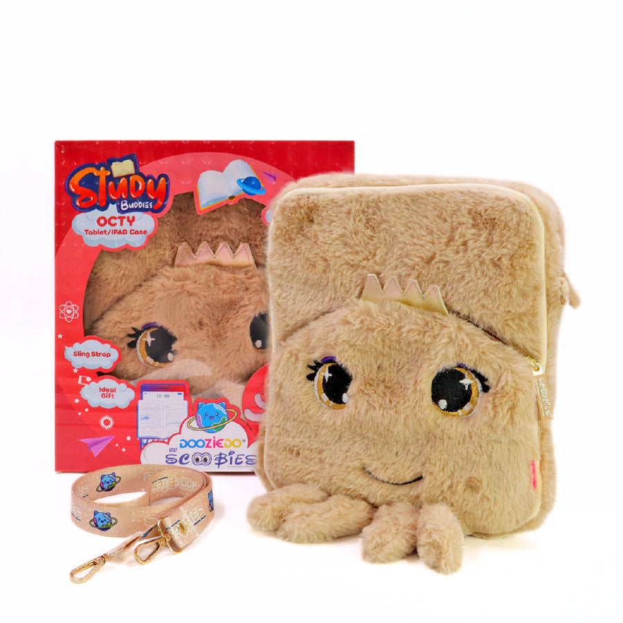Introducing Scoobies Octy plush and stylish tablet and iPad case, perfect for tech-savvy kids who love fun and functionality! Crafted from premium plush material and designed for both style and practicality, these cases are spacious enough to accommodate tablet or iPad securely. The built-in cushion provides extra protection against bumps and scratches, ensuring your device stays safe and secure.