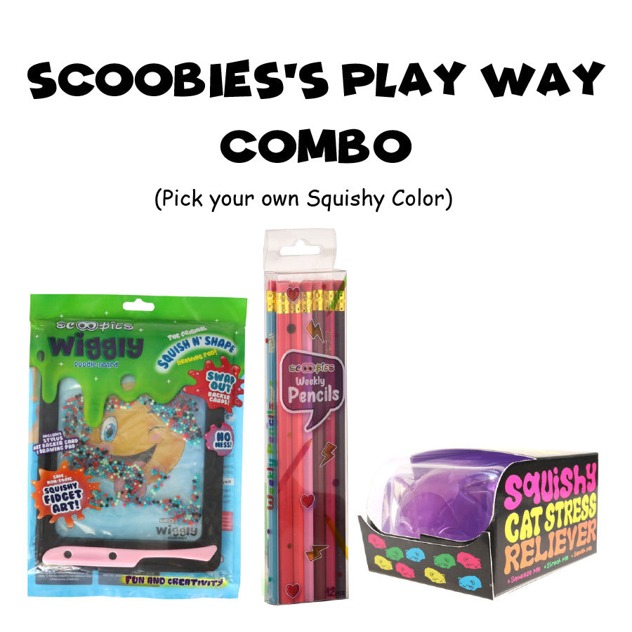 - Squeezy Cat - Designed for gentle fidgeting, Scoobies Squeezy Cats are non-toxic and 100% kids-safe. It provides hours of mess-free fun along with sensory activation.-