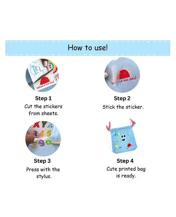 There is no end to kids' love for stickers. We just made it more special. With this Scented Transfer Sticker set kids can create and design a pouch bag with stickers of their choice. Let them create a utility out of their creativity!