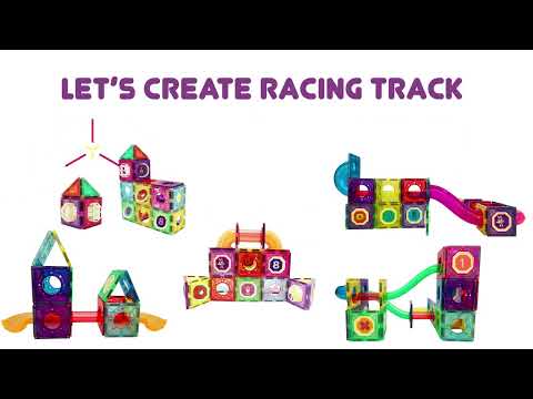 Pack Includes - This is a 78-piece set that includes 16-piece multi-colored square tiles, 4-piece U-shaped tracks, 8-piece multi-colored straight tracks, 4 semi-circle magnetic tiles, 4 small U-shaped tiles, 10-piece heptagon window tiles, 4 plastic balls, 28-different shaped windows, 1 sticker sheet and an instruction manual for design inspiration.