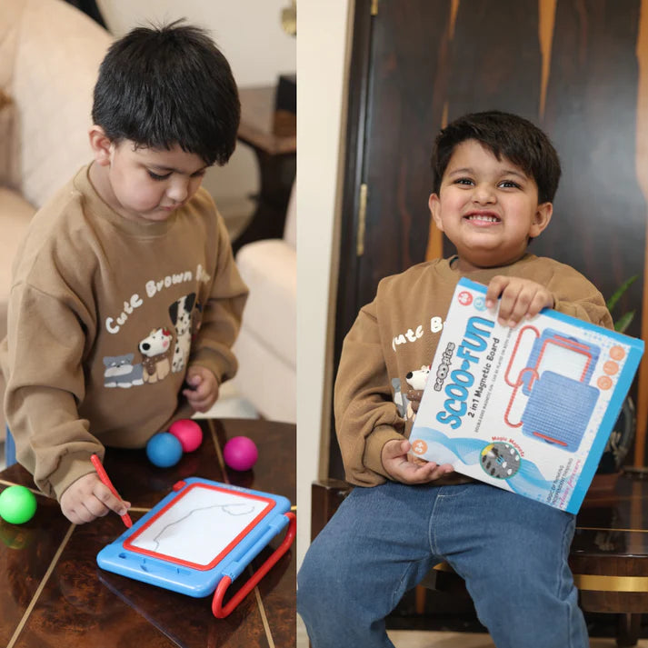Say hello to the Scoobies Scoo-Fun 2-in-1 Magnetic Board – where learning meets play! Designed for kids 3+, this dual-sided wonder offers double the fun: one side for smooth writing & doodling, and the other for magnetic play with alphabets, numbers, and shapes. Sturdy, lightweight, and travel-friendly, it’s the perfect educational buddy to keep little minds busy—whether at home, in school, or on the go!