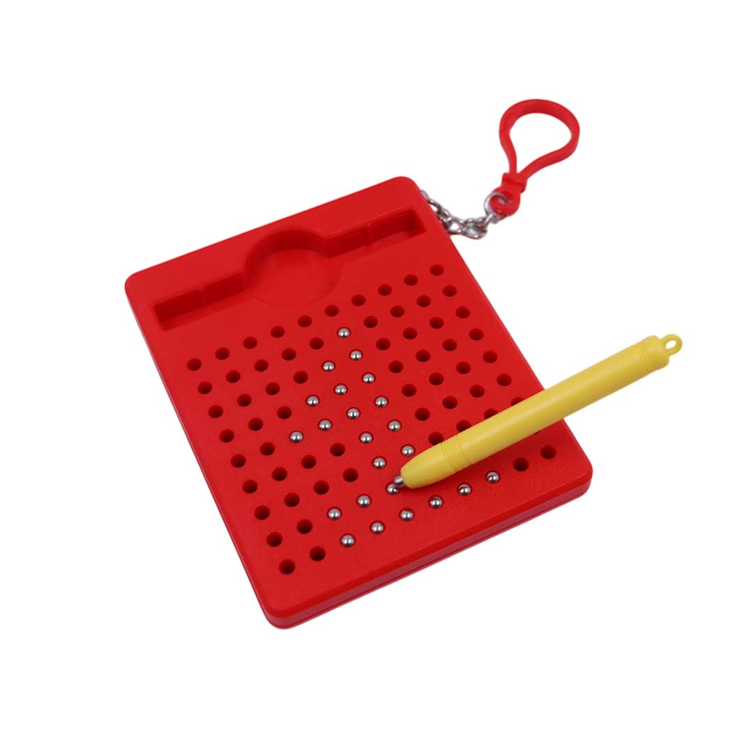 A fun, creative magnetic writing pad that uses a magnetic stylus to pop beads up with an audible click, encouraging focus, fine motor skills, and sensory stimulation. Perfect for mess-free doodling and early learning on the move.
