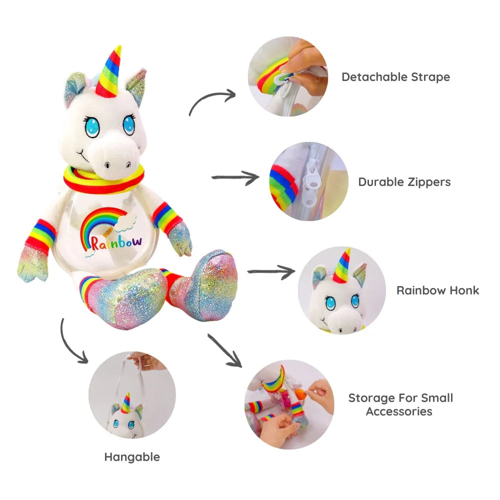 Premium Quality - Unicorn Cozy is designed carefully considering kids in mind. Made of outer plush material, it is 100% non-toxic and kids-safe. The inner pouch is of PVC plastic material and comes with durable zip closures along with a detachable strap.