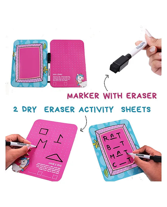 - 2 reusable dry-erase activity sheets – Eco-friendly fun that can be used again and again.