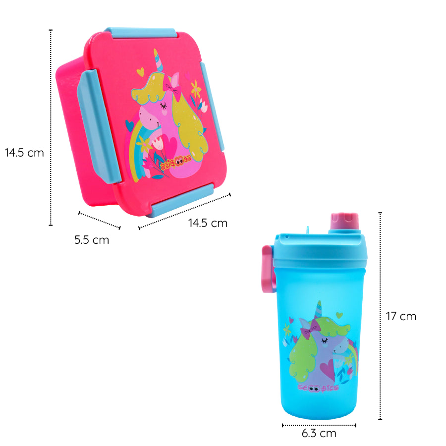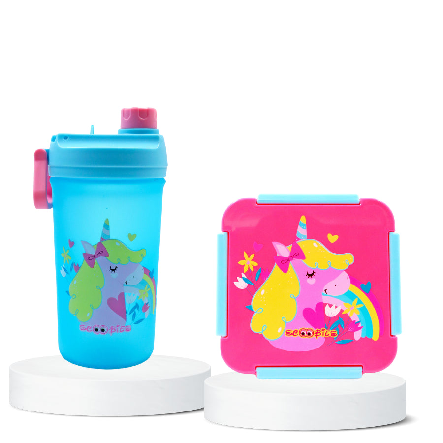 The Unicorn Treats Combo is perfect for school, picnics, or any unicorn-themed adventure. Treat your child to this delightful set and watch their imagination soar with every sip and bite!