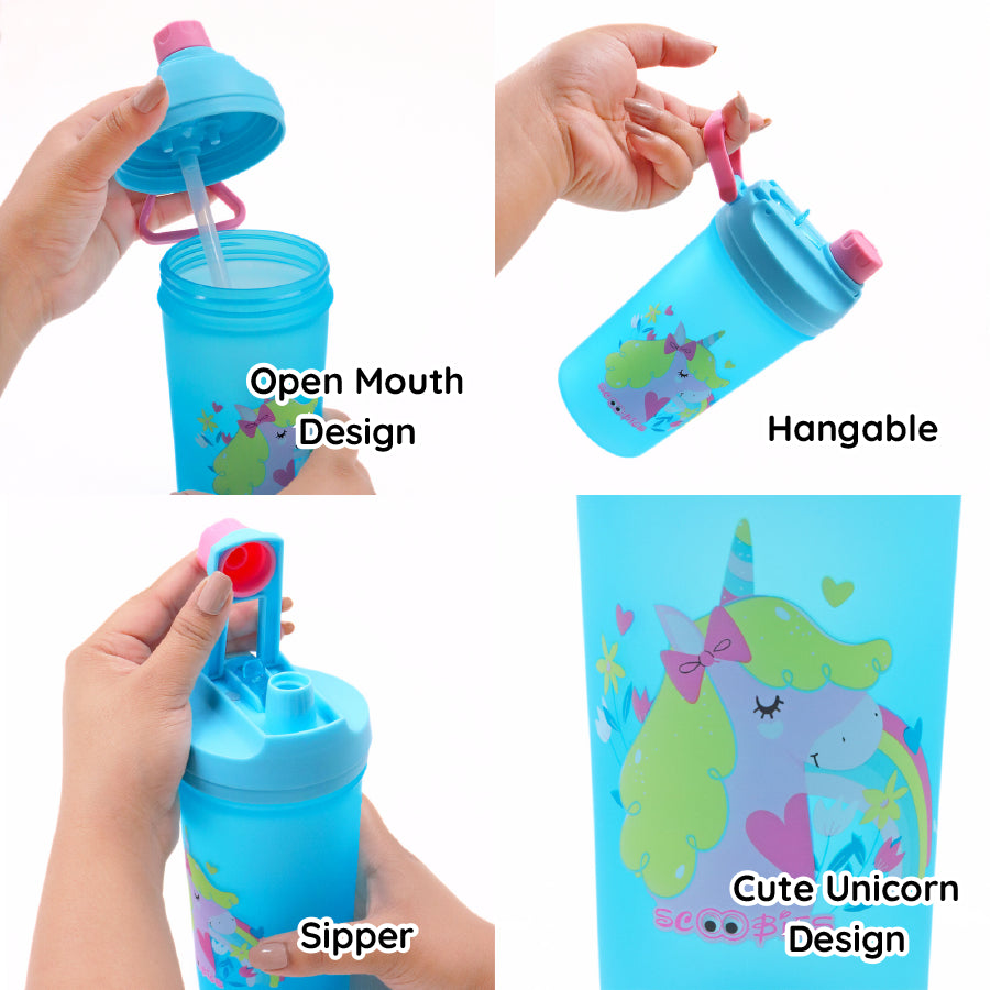 - Fantasy Unicorn Water Bottle: Stay hydrated in style with our Unicorn Bottle. Featuring a whimsical unicorn design, this bottle is BPA free. The durable construction and leak-proof cap make it ideal for school use. It is crafted using slip-resistant PP Plastic and ensures BPA-free & toxin-free sipping & supping. It comes with a sipper that offers hassle-free sipping even in a crowded market or in the comfort of your living room. An airtight lockable flip-top makes it spill-leak-proof. The inside straw can be easily detached while washing. This is a sturdy yet lightweight bottle with heat-resistant, odorless, and break-proof qualities.