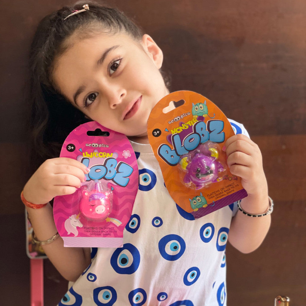 Meet your munchkin's 'soon-to-obsession' Unicorn Blobz. Let kids enjoy stretching, squishing, and flipping this unicorn blob and see them magically reforming into its original shape within a second.